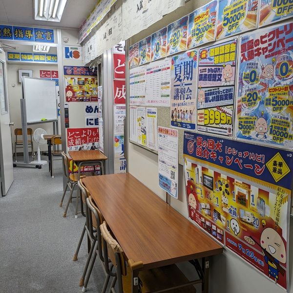 とにかく教室が狭いです。自習室というよりは空いているスペースに机があるという感じでした。でもその分先生の目が届きやすいという利点もありますね。