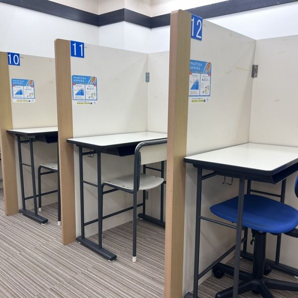 子どもの性格に合わせて講師を当ててくれて、合わない場合は速やかに交代できる。教材は学校のものを中心に進め、ブース式で学習が苦にならず集中できるとのこと。ゲーセンの音がやや響く時があるようです。