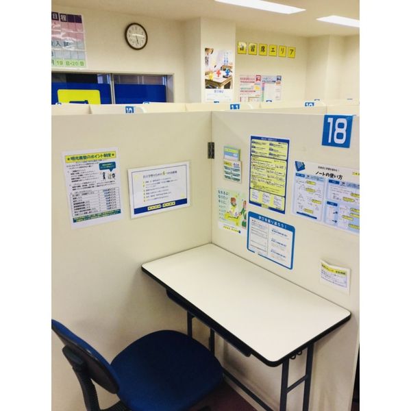 塾内の机が個別に区切られ集中しやすい仕組みになっていた印象です。