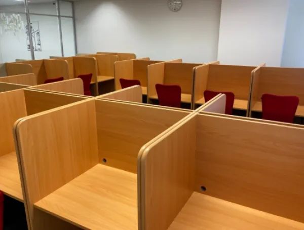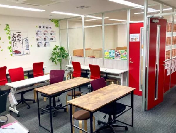 ビルの一室で入口が少し入りにくい雰囲気でした。中は勉強スペースでシンプルな作りでした。