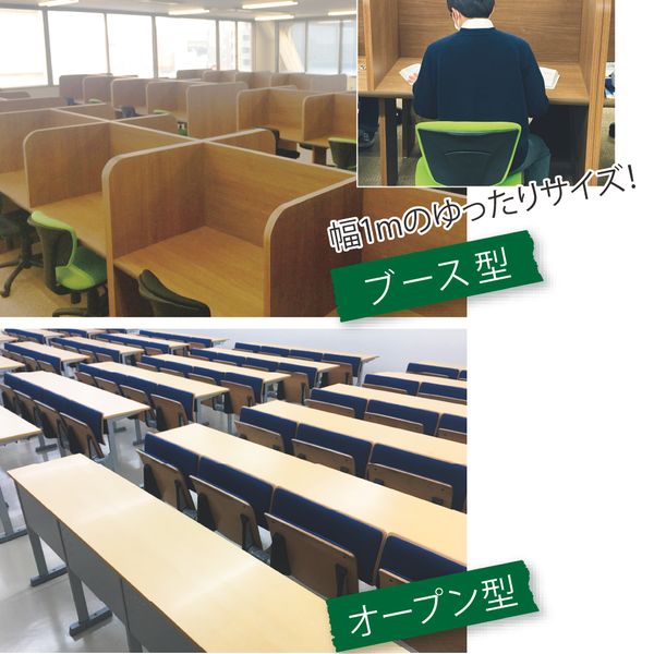 料金は普通で駅近便利、自習室も多く換気良好です!