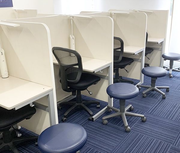 照明やパーテーションなど細部までこだわった学習空間。授業がない日も自習スペースを自由に利用でき、部活帰りや休日の勉強に最適。静かな環境で集中でき、手の空いた講師への質問も可能。家より学校より勉強したくなる場所を提供します。