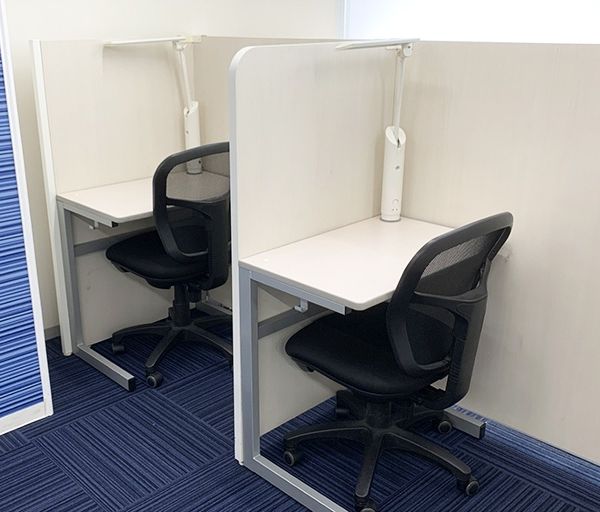 白を基調とした清潔感のある空間です。講師の授業の声が聞こえる活気ある雰囲気が感じられます。