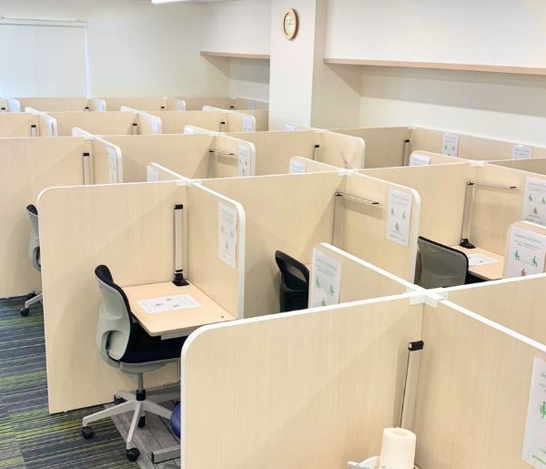 照明やパーテーションなど細部までこだわった学習空間。授業がない日も自習スペースを自由に利用でき、部活帰りや休日の勉強に最適。静かな環境で集中でき、手の空いた講師への質問も可能。家より学校より勉強したくなる場所を提供します。