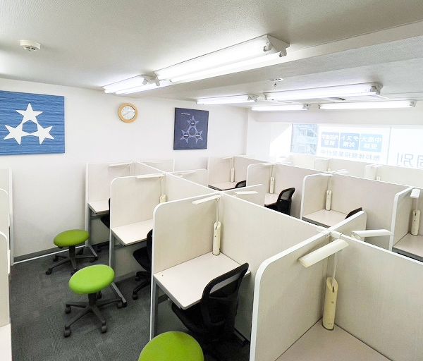 教室内は見通しが良く、講師も生徒も互いに見える環境で、プライバシーへの配慮も感じます。