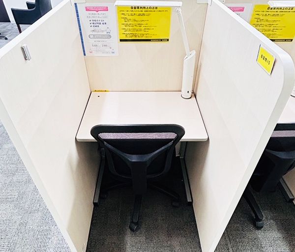 半個室になっており、基本的には集中できますが、周りの生徒さん次第な面もあります。