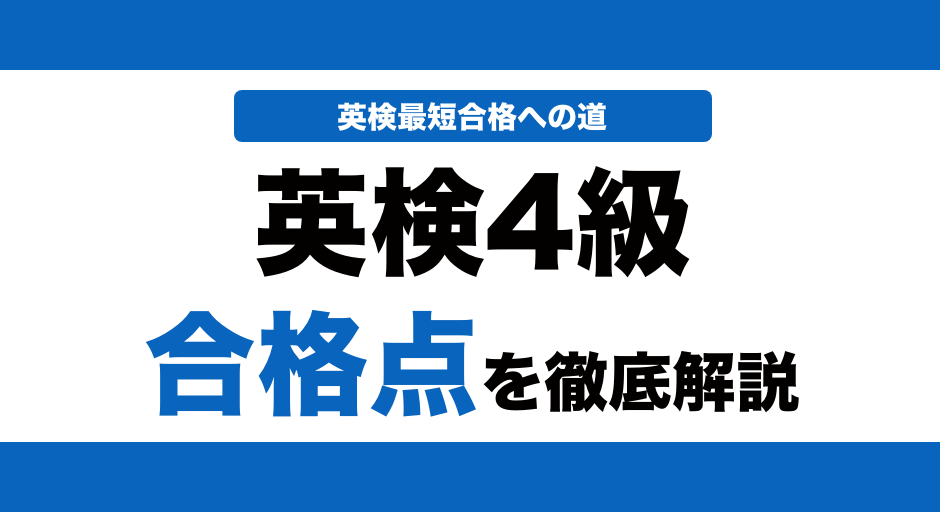 英検4級の合格点を技能別にリーディングの合格点、リスニングの合格点、ライティング(英作文)の合格点、スピーキング(面接)の合格点ごとに解説します。また英検4級の1次試験の合格点と2次試験の合格点も解説します。また英検4級のCSEスコアでの合格点から何割で合格できるかの具体的な合格点数も実際のデータを元に解説します。