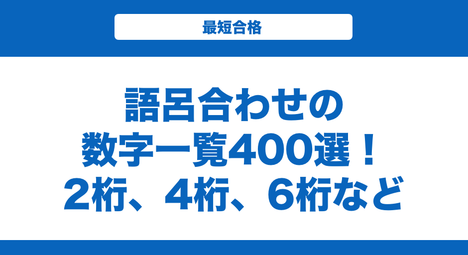 語呂合わせの数字を400個紹介します。歴史や暗記や受験や2桁から4桁から6桁の数字の語呂合わせ一覧表を紹介します。ルートの語呂合わせ一覧から年号の語呂合わせ一覧から百人日主の語呂合わせ一覧から数学の公式の語呂合わせ一覧まで幅広く数字を使った語呂合わせ一覧を紹介します。
