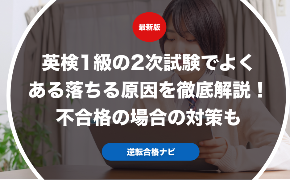 英検1級の2次試験で落ちる原因を解説します。また実際に英検1級の2次試験に不合格になる原因を実際にこれまでの受験生のデータをもとに具体的に解説します。さらに実際に英検1級の2次試験で不合格になった場合の対処法も合わせて解説します。