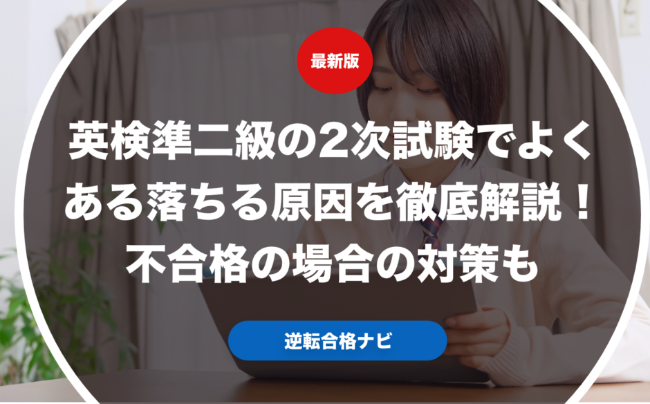 英検準二級の2次試験で落ちる原因を解説します。また実際に英検準二級の2次試験に不合格になる原因を実際にこれまでの受験生のデータをもとに具体的に解説します。さらに実際に英検準二級の2次試験で不合格になった場合の対処法も合わせて解説します。