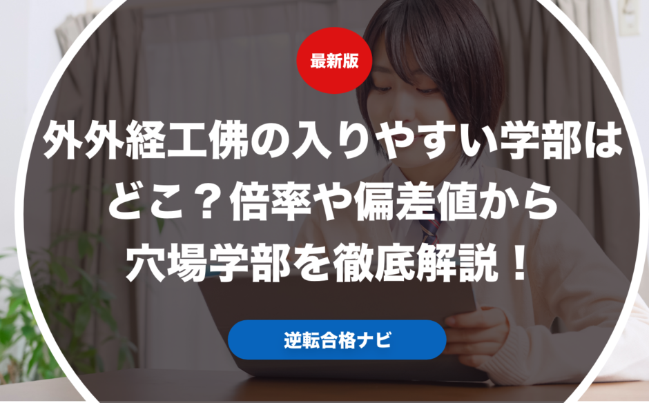 外外経工佛の入りやすい学部と穴場学部を具体的に解説します。また外外経工佛の倍率の低い穴場学部や偏差値の低い受かりやすい学部学科をそれぞれ解説します。外外経工佛志望の受験生やその保護者の方はぜひ参考にしてみてください。