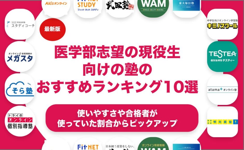 医学部志望の現役生向けの塾をおすすめのランキング形式で10個紹介します。医学部志望の現役生向けの塾を探している方におすすめの選び方や選ぶ上でのポイントも合わせて解説します。医学部志望の現役生向けの塾を料金や特徴で比較しながら解説します。医学部志望の現役生向けの塾の中でも自分に合ったものを見つけたいという方はぜひ参考にしてみてください。