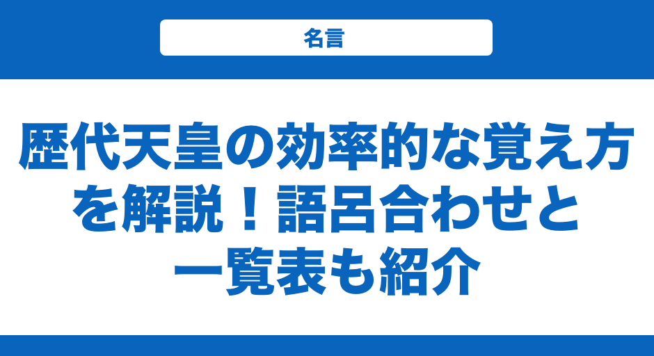 日本史の歴代天皇の効率的な覚え方を解説します。また歴代天皇の語呂合わせでの覚え方から歴代天皇の一覧表も紹介します。日本史の歴代天皇を全て覚えるためのコツから入試で頻出の歴代天皇の特徴まとめまで歴代天皇を覚える上で役立つポイントも合わせて解説します。