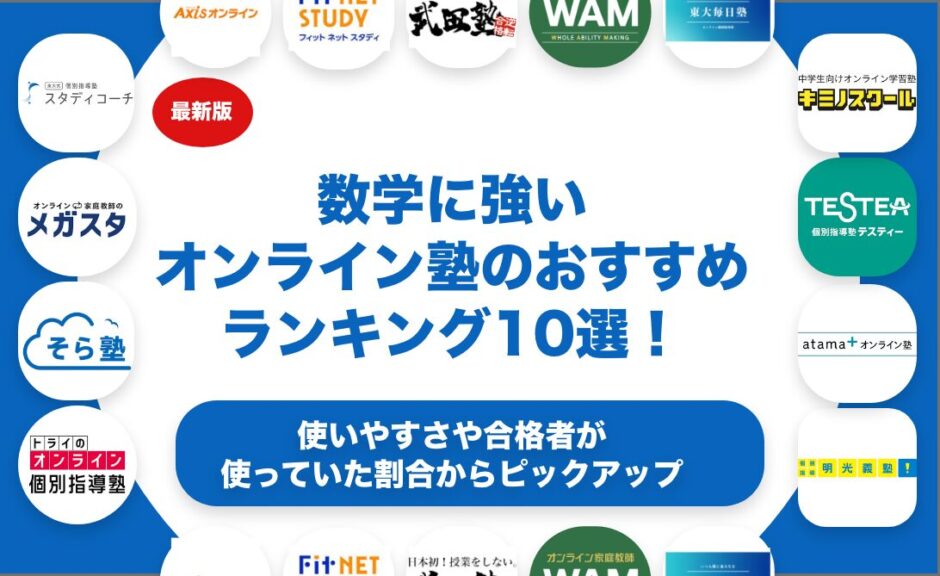 数学に強いオンライン塾をおすすめのランキング形式で10個紹介します。数学に強いオンライン塾を探している方におすすめの選び方や選ぶ上でのポイントも合わせて解説します。数学に強いオンライン塾を料金や特徴で比較しながら解説します。数学に強いオンライン塾の中でも自分に合ったものを見つけたいという方はぜひ参考にしてみてください。