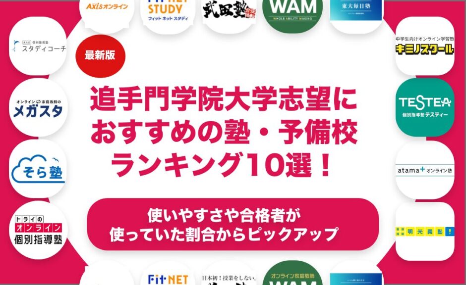結論から述べると追手門学院大学を目指す受験生におすすめの塾は、第1位がatama+オンライン塾、第2位が逆転合格特化塾、第3位が坪田塾です。