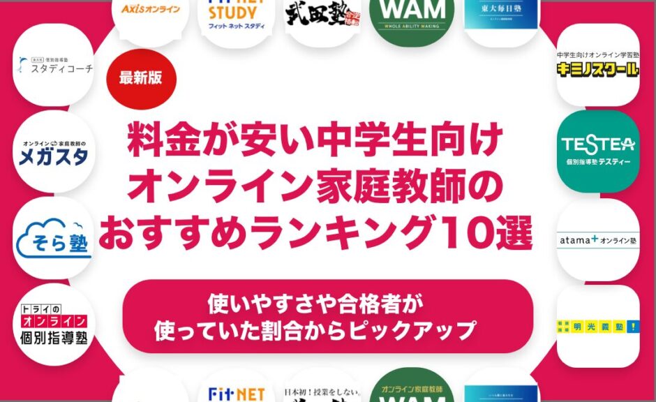 料金が安い中学生向けオンライン家庭教師をランキング形式で紹介します。