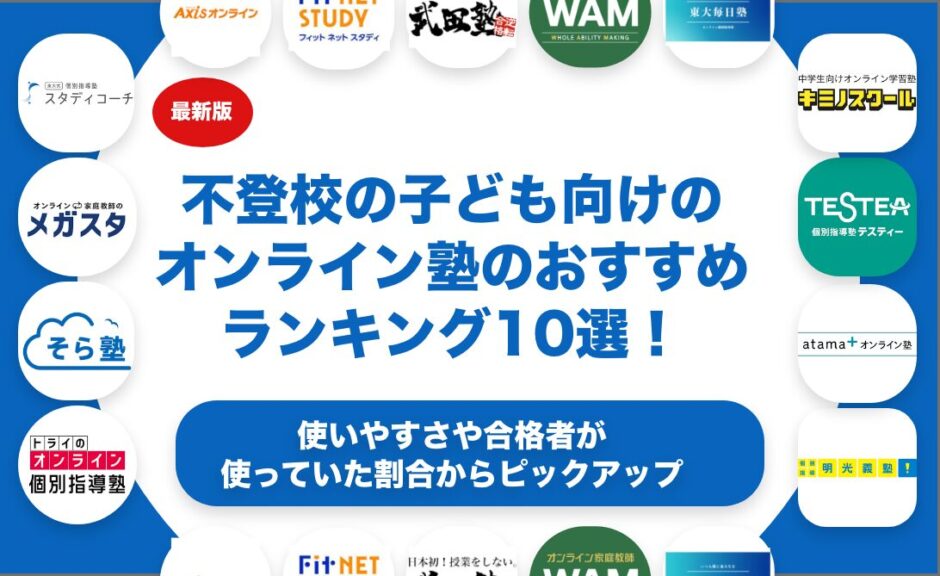 不登校の子ども向けのオンライン塾をおすすめのランキング形式で10個紹介します。不登校の子ども向けのオンライン塾を探している方におすすめの選び方や選ぶ上でのポイントも合わせて解説します。不登校の子ども向けのオンライン塾を料金や特徴で比較しながら解説します。不登校の子ども向けのオンライン塾の中でも自分に合ったものを見つけたいという方はぜひ参考にしてみてください。