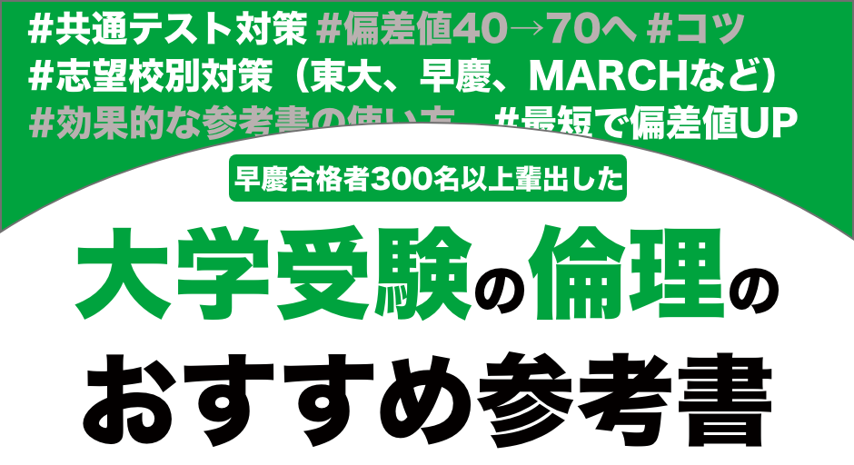 共通テスト対策におすすめの倫理の参考書から志望校別に大学受験におすすめの倫理の参考書から大学受験対策の倫理の参考書ルートを解説します。
