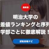 立命館大学の学部ごとの偏差値序列は国際関係学部が最も高く、次いで総合心理学部や法学部が続き、理工学部の一部学科が最も入りやすい難易度となっています。