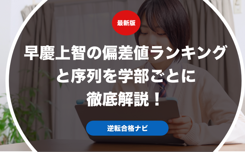 早慶上智の偏差値をランキング形式で学部ごとに紹介します。また早慶上智の序列から各大学の特徴や偏差値や難易度についてそれぞれ具体的に解説します。早慶上智を志望校として考えている人はぜひ参考にしてみてください。
