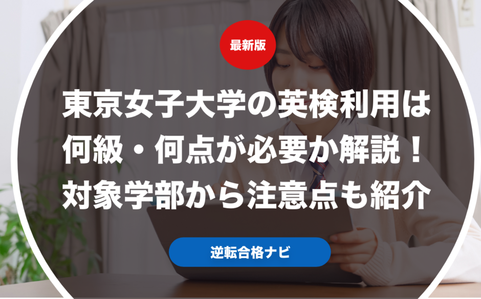 東京女子大学の英検利用は何級・何点が必要なのか具体的に解説します。また実際に東京女子大学で英検利用ができる学部からそれぞれの英検利用で合格するための注意点も紹介します。さらに実際に東京女子大学志望の受験生や保護者向けに英検利用の優遇措置やおすすめの受験戦略についても合わせて解説します。