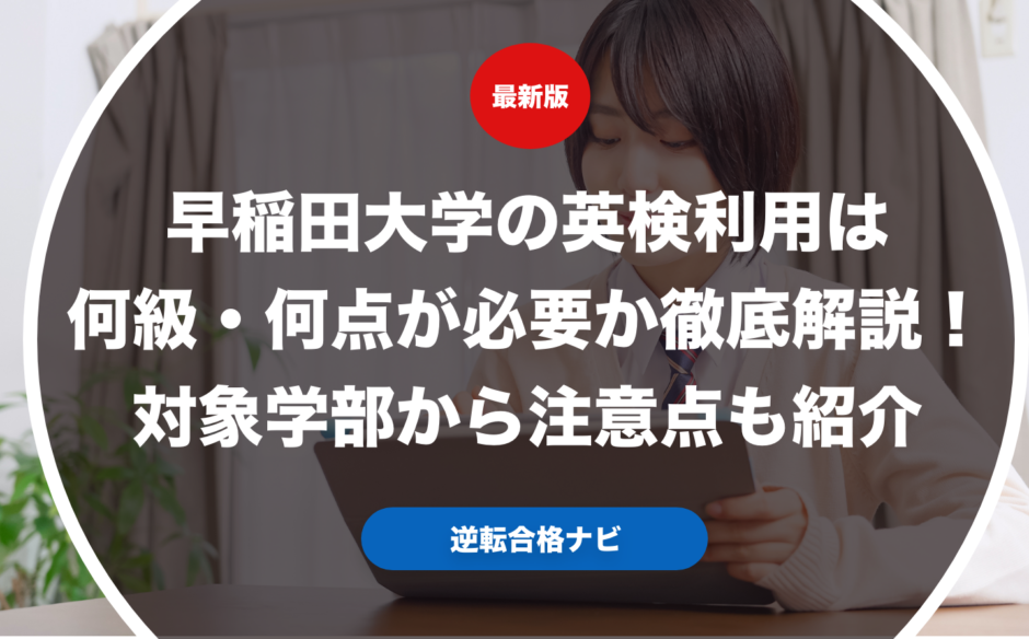 早稲田大学の英検利用は何級・何点が必要なのか具体的に解説します。また実際に早稲田大学で英検利用ができる学部からそれぞれの英検利用で合格するための注意点も紹介します。さらに実際に早稲田大学志望の受験生や保護者向けに英検利用の優遇措置やおすすめの受験戦略についても合わせて解説します。