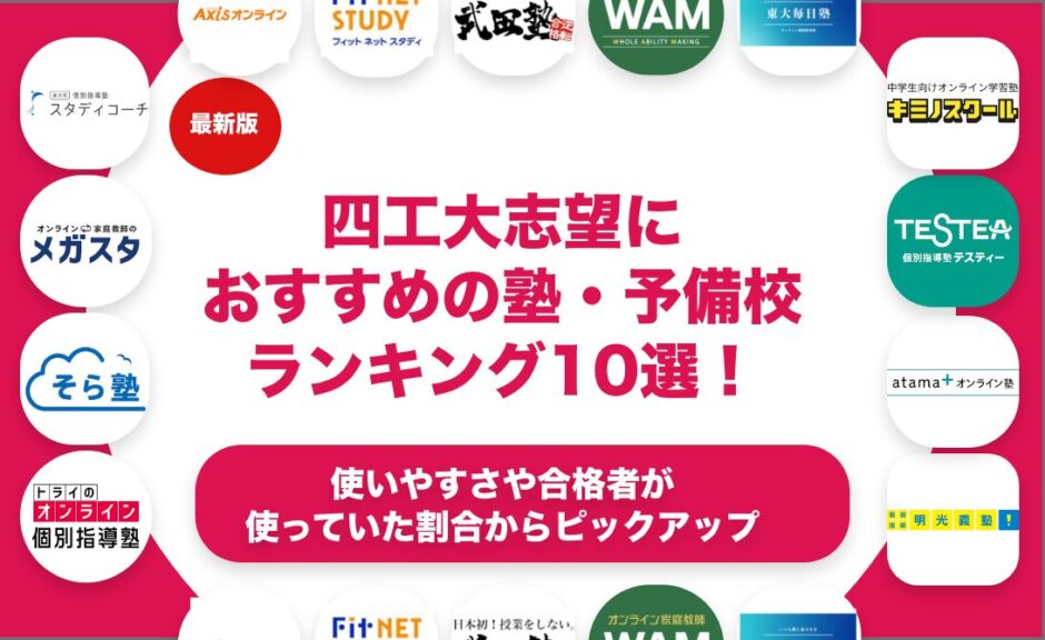 結論から述べると四工大志望の大学受験対策におすすめの塾は1位がatama+オンライン塾、2位が逆転合格特化塾、3位が東大コーチです。